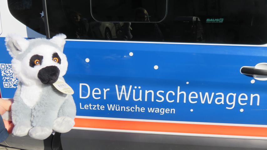 Auf dem Weg zurück werden wir von zwei Plüsch-Kattas aus dem Souvenirladen begleitet, Heidi konnte nicht widerstehen. Zusammen mit dem Wünschewagen-Bärchen werden sie liebevoll nach Hause begleitet. Der Tag war aufregend, wir sind alle ein bisschen erschöpft und reden wenig. Ich denke über das nach, was Heidi mir erzählt hat, als sie plötzlich ganz verträumt: „Wunderschön. Augen zum Verlieben!“ sagt. Ich bin kurz überrascht, wie toll Heidi mich auf einmal findet, aber an ihrem Lächeln erkenne ich, dass sie in Gedanken noch bei „ihren“ Kattas ist.“