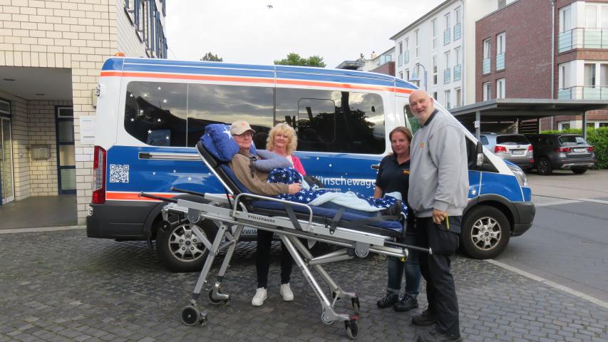 Unsere jüngste Fahrt ging am 31. Mai vom Hospiz in Geesthacht nach Travemünde. An Bord waren unsere Wunscherfüller Karl-Heinz und Kristina mit ihrem Fahrgast Herrn M. (91) und seiner Tochter Gabriele. Der Wunsch des Gastes war: Noch einmal den Ort, wo er in seiner Jugend viel Zeit verbracht hat, zu sehen und im Kreise seiner Familie den Tag zu verbringen.
