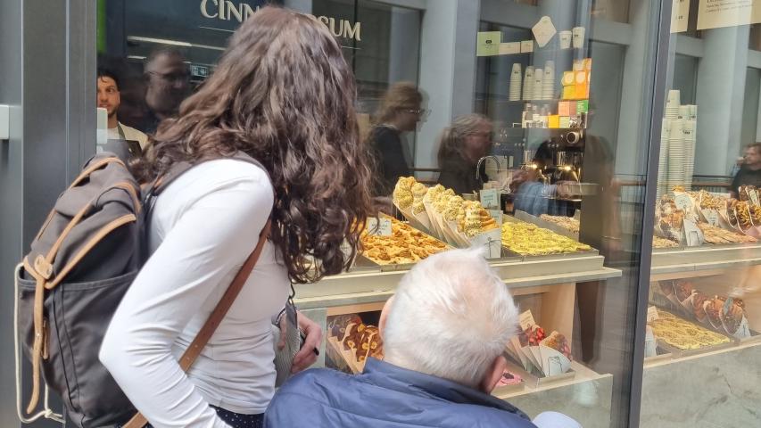 Gesagt, getan. Wir fuhren HG im Rollstuhl an den Geschäften vorbei, blieben an den Schaufenstern stehen und bestaunten die Auslage. Später fuhren wir in die Etage, in der die Restaurants zu finden sind. HG wollte gern chinesisch essen, also suchten wir uns schöne Plätze.