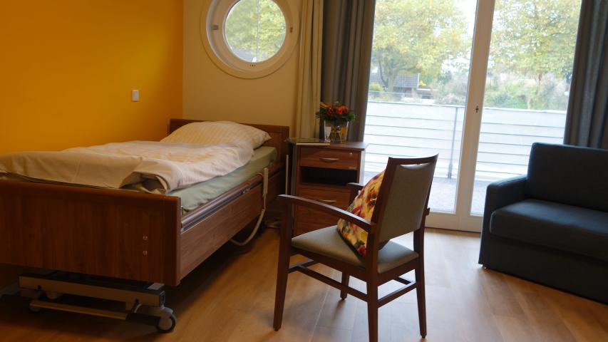 Das Hospiz verfügt über 12 barrierefreie Einzelzimmer, die alle mit Dusche und Toilette, Telefon-, Fernseh- und Internetanschluss sowie Terrasse oder Balkon ausgestattet sind. Eine wohnliche Atmosphäre ist uns sehr wichtig. Zur festen Einrichtung der Zimmer gehören ein bequemes Pflegebett, ein abschließbarer Nachttisch, ein Schrank, ein Schlafsessel und ein Tisch mit zwei Stühlen.